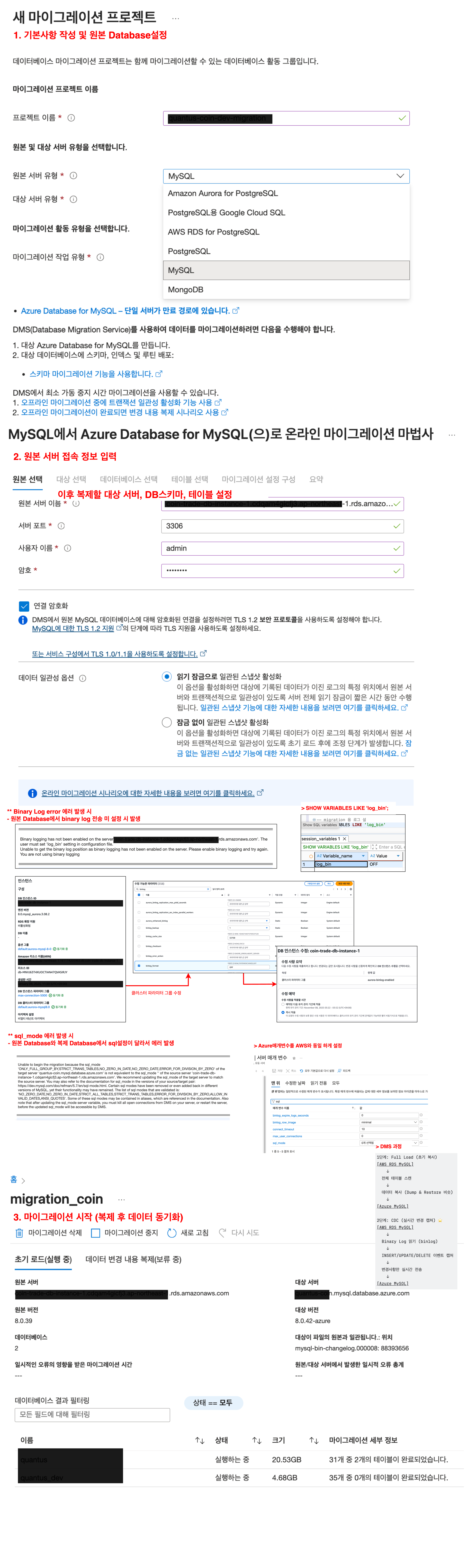 Database Migration 상세 프로세스 게시 2025/11/01 업데이트 2025/12/29 By 이건학 1 분읽는 시간1. Migration Process1) 상세과정1. Azure DB 배포하기2. DMS 서비스 등록하기- 마이그레이션 서비스 생성하기- 새 프로젝트 생성 work mysql, DMS, CDC, Azure 이 기사는 저작권자의 CC BY 4.0 라이센스를 따릅니다. 공유하기